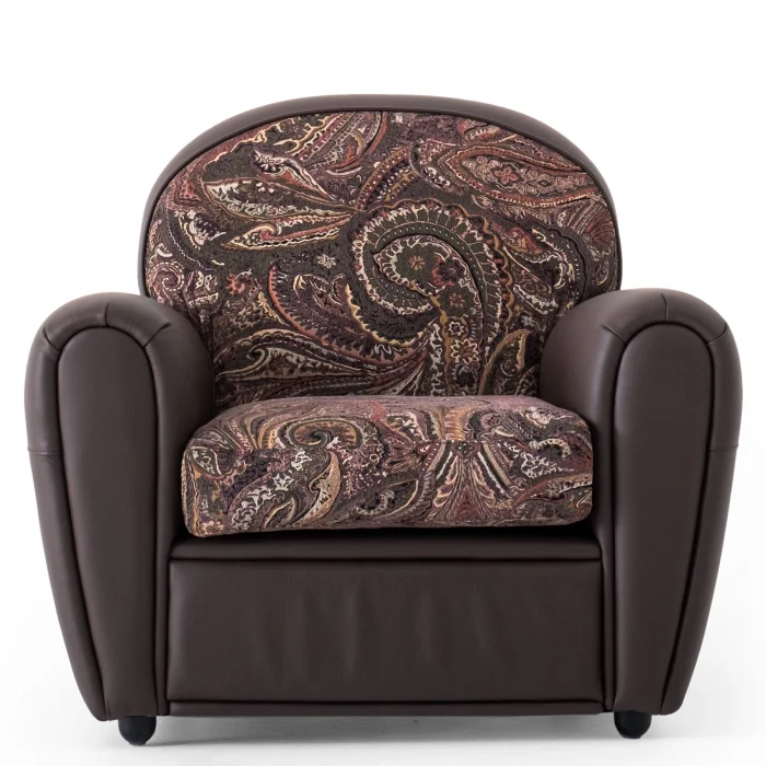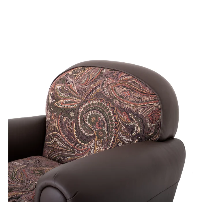 94 cm genişlik, 91 cm derinlik, 83 cm yükseklik ve 41 cm oturum yüksekliği ile fonksiyonel ve zarif bir yapıya sahip olan Roma Berjer, klasik ve modern unsurları harmanlayan tasarımıyla her ortama uyum sağlıyor. Kahverengi deri yüzey ve dokuma desenli detaylarıyla sıcak ve davetkar bir atmosfer yaratıyor.