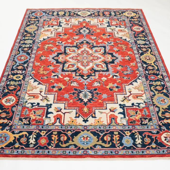 Tempus Serisi Anadolu Madalyon Desenli Kırmızı Yün Özel Tezgah Halısı, Halıcızade’nin özel olarak ürettiği bir koleksiyon parçasıdır. Yün ipliklerle dokunan bu halı, doğal halılar arayanlar için mükemmel bir seçimdir. Orta kalınlığı ve sık dokuması sayesinde toz toplamaz ve kullanımı oldukça rahattır. Halıcızade’ye özel olarak dokunduğunu gösteren hayat ağacı simgesini taşıyan Tempus Serisi Anadolu Madalyon Desenli Kırmızı Yün Özel Tezgah Halısı, Anadolu’nun Ege Bölgesi’nde dokunmuştur. Modern teknoloji ile köklü dokumacılık kültürünün birleşimi olan bu halı, el dokuması görünümüyle dikkat çeker. Kırmızı ana renk üzerine beyaz ve mavinin tonlarıyla süslenmiş olan bu halının ortasındaki simetrik desenler, Anadolu'nun mirasını ve tarihini yansıtan çiçek motifleri ile bezenmiştir. Tempus Serisi, Halıcızade’nin 20 yıllık tecrübesini barındıran farklı ölçü seçenekleri ile her mekana uyum sağlayarak otantik desenleriyle evinize size özgü bir tarz katar. Tempus serisi halılar, tamamı yün doğal ipliklerle üretilmiş olup, doğallık arayanlar için mükemmel bir seçenektir. Orta kalınlıktaki sık dokuması sayesinde toz tutmaz ve kullanımı oldukça rahattır. Özel dokuma tekniğiyle el dokuması halı görünümüne sahiptir ve klasik halı dokusunu evinize taşır. Halıcızade’ye özel hayat ağacı simgesi, bu halıları benzersiz kılar ve başka bir yerde bulamayacağınız bir koleksiyon sunar. Ege Bölgesi'nde dokunan bu halılar, bölgenin köklü dokumacılık kültürü ile modern teknolojiyi bir araya getirir. Salon, oturma odası, antre, yatak odası gibi yaşam alanının çeşitli yerlerinde kullanılabilir.