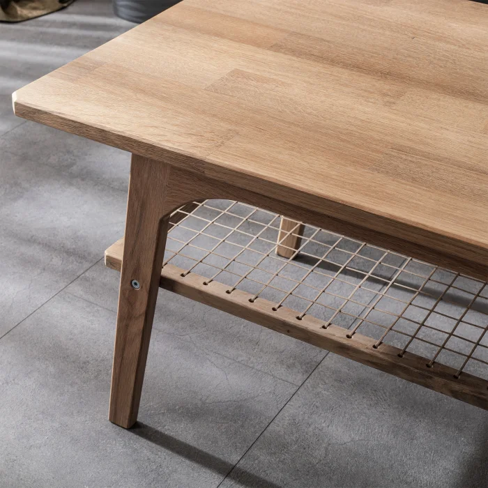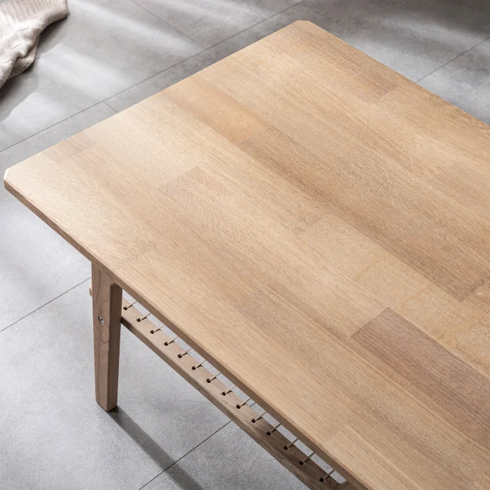 Ürün: El Yapımı Doğal Ahşap Raflı Meşe Orta Sehpa