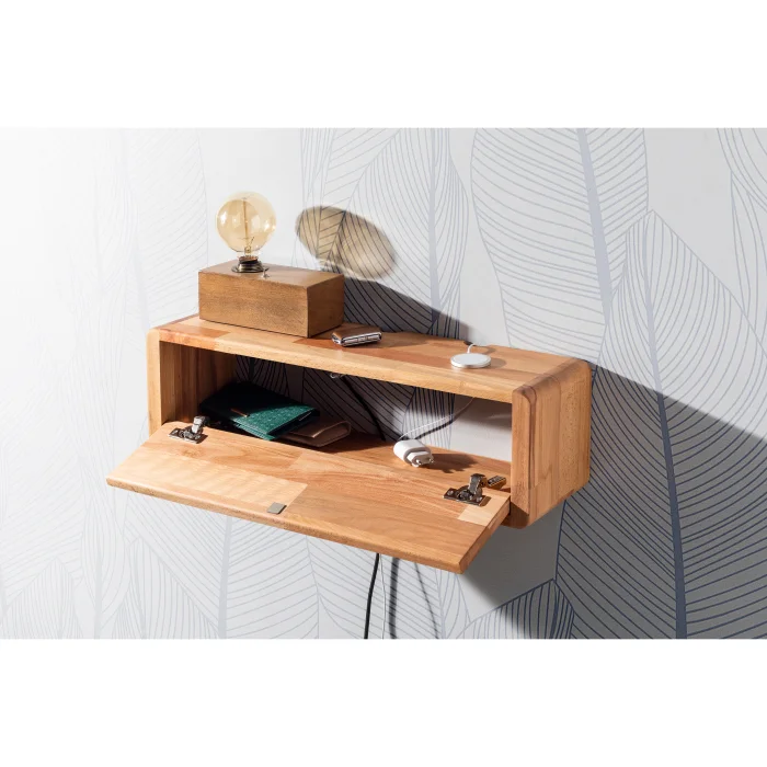 Ürün: Kayın Ağacı Kapaklı Duvar Rafı Ve Kablo Düzenleyici