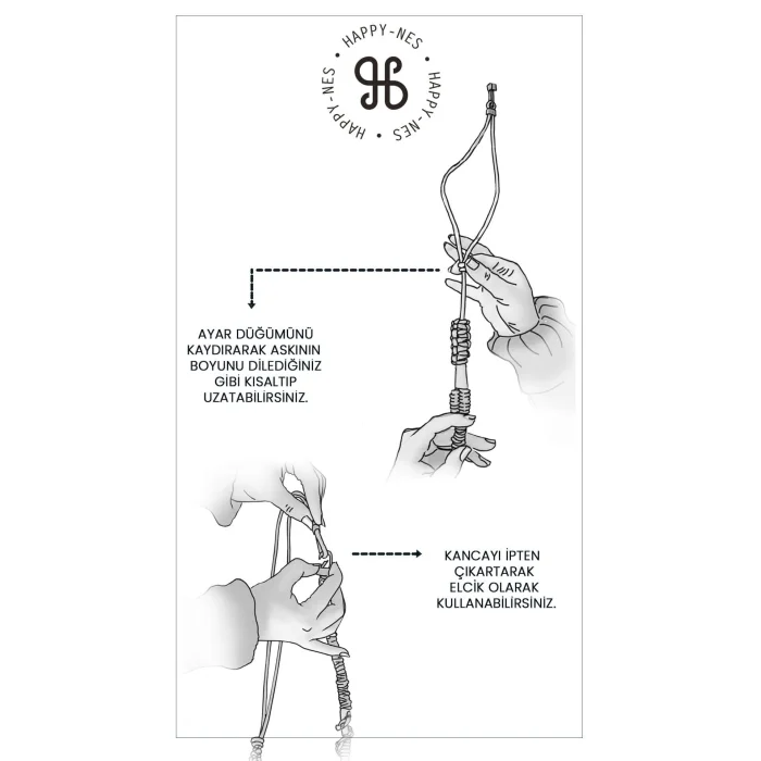 100-140 cm arası ayarlanabilir uzunluk Tek başına kullanabilen kısa askı yapısı sayesinde sadece el askısı olarak kullanabilir, belinize takabilirsiniz. %100 el yapımı Maksimum taşıma kapasitesi 4 kg Telefon kılıfı askı bedelinin içinde değildir. Telefonunuza göre kılıf veya Patch seçeneğinizi yaptıktan sonra ürün bedeli yansıyacaktır.