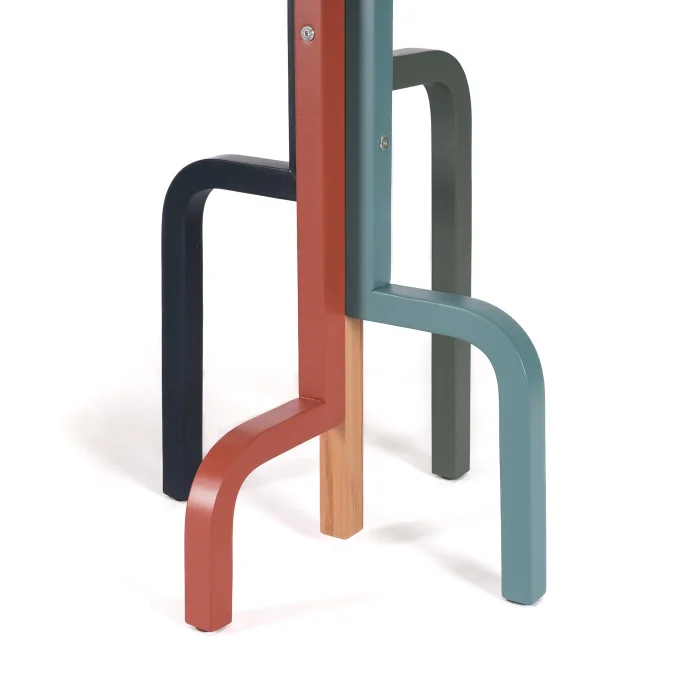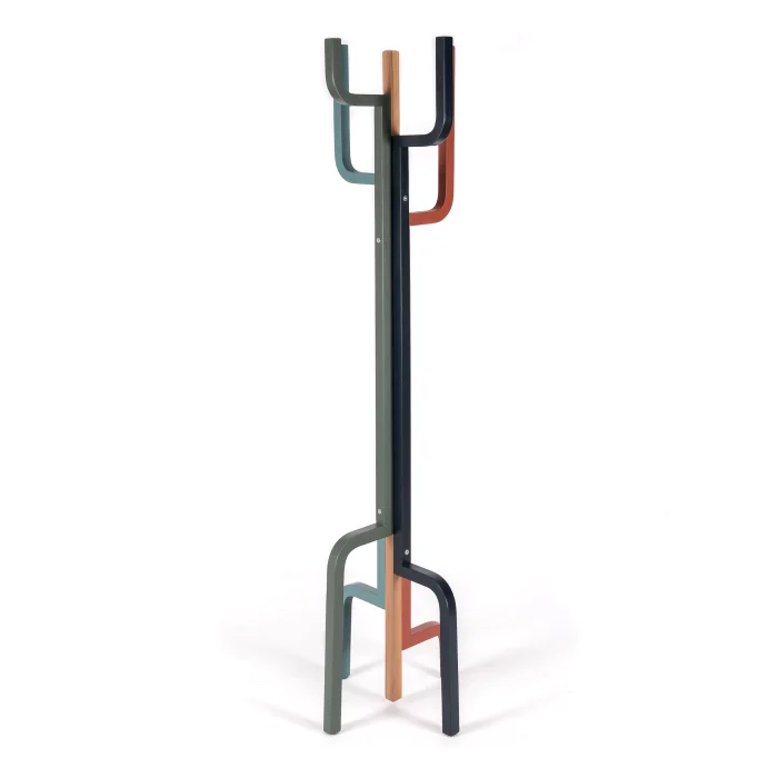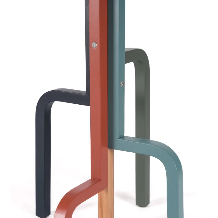 Ways askılık, gövdesinden yukarıya uzanan zarif kollarıyla geleneksel şıklığı modern tasarımla buluşturur. Zamansız duruşu ve özenli işçiliğiyle her detayı öne çıkar. Dayanıklı yapısı ve pürüzsüz yüzeyiyle dikkat çeken bu askılık, renkli ve kıvrımlı kollarıyla ortama özgün bir karakter katar. Farklı renk ve ahşap seçenekleriyle her dekorasyona uyum sağlar, hem düzen hem de şıklık sunar.