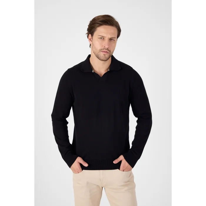 Ürün: %100 Pamuk Patlı Düğmesiz Polo Yaka Triko Kazak