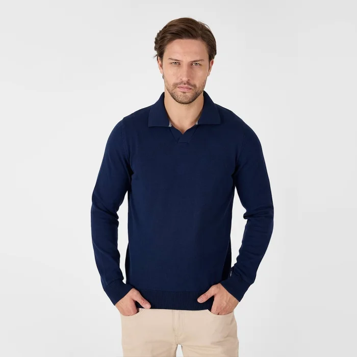 Ürün: %100 Pamuk Patlı Düğmesiz Polo Yaka Triko Kazak