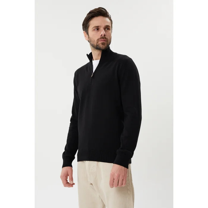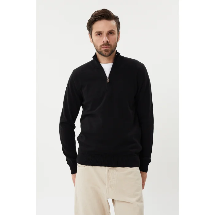 Ürün: %100 Pamuk Yarım Fermuarlı Dik Yaka Triko Kazak