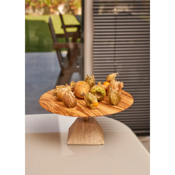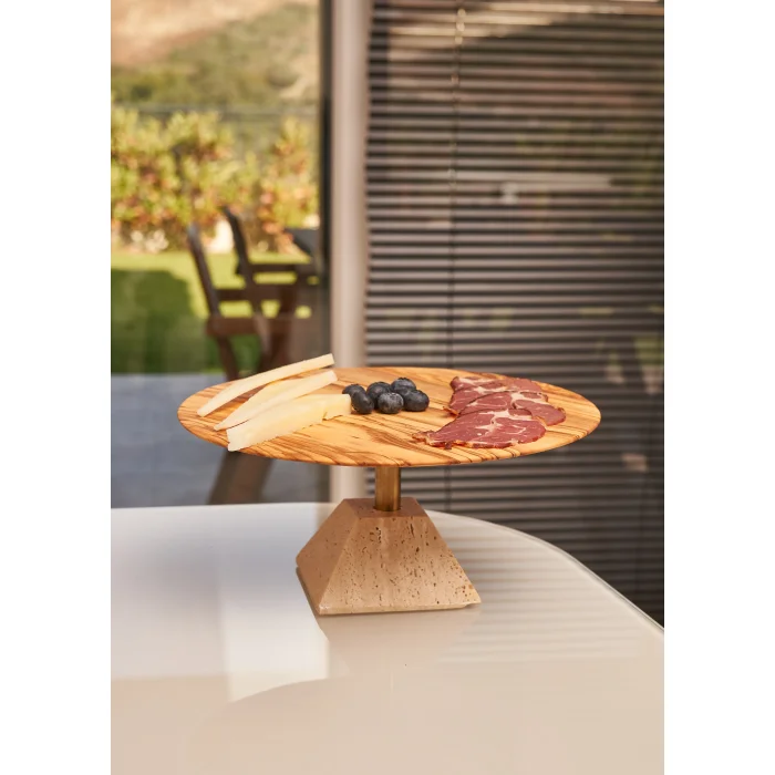 Yüksek Kalite Zeytin Agacı Servis Sunumluk, Traverten Mermer Ayak, Pirinc Govde Cubuk.