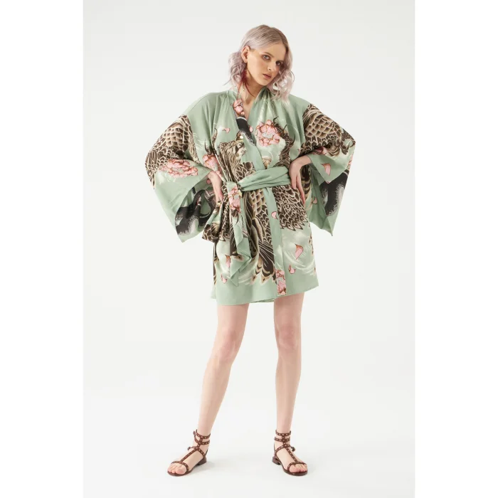 Pamuklu, desenli kumaştan tasarlanmıştır.
