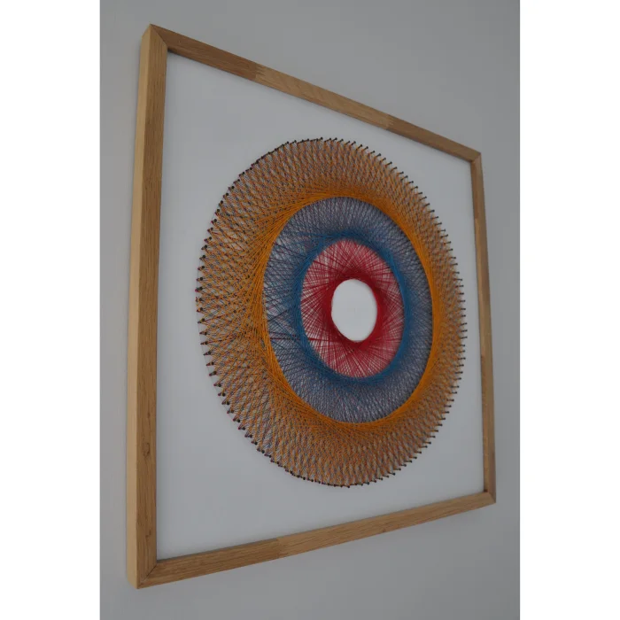 Beyaz ahşap zemin üzerine çivi ve renkli iplerle elde işlenmiş bir eserdir. Sonbaharın naturel renkleri kullanılmış ve masif meşeyle çerçevelenmiştir.