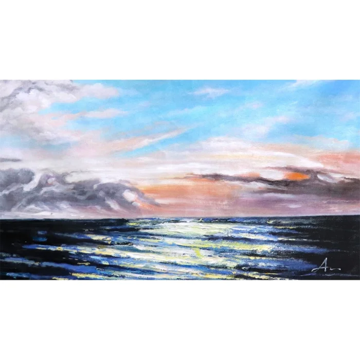 Ürün: Deniz Sunset El Yapımı Yağlı Boya Tablo 94x60 Cm
