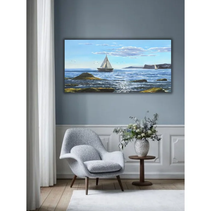 Ürün: Yelken Deniz El Yapımı Yağlı Boya Tablo 104x60cm