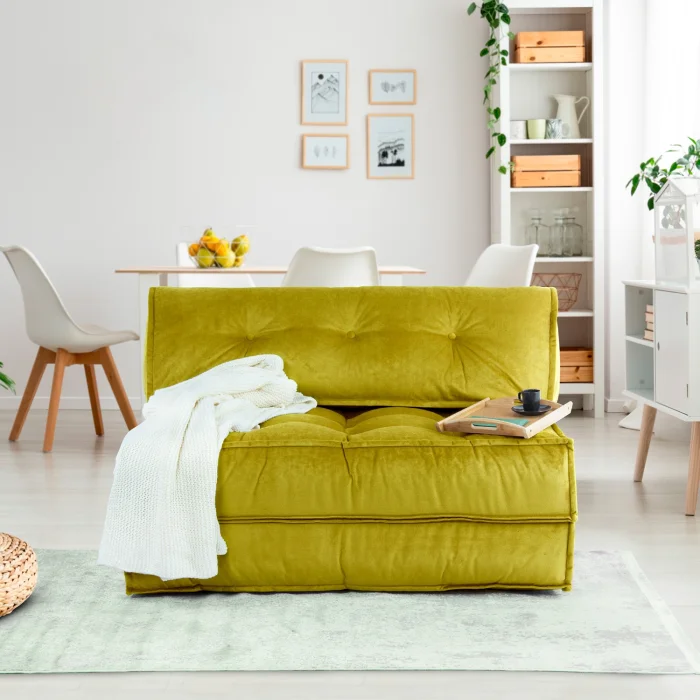 Mocca buklet dekoratif yataklı koltuk çift kişilik.