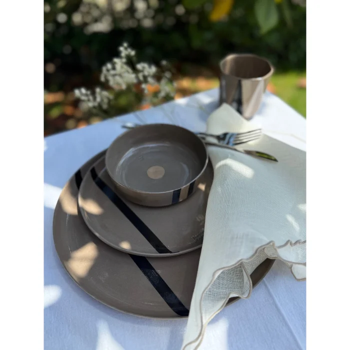 Stoneware tabak Renk:Antrasit Ürün ölçüsü :27 cm yemek tabağı boyutu El yapımı Bulaşık makinesine girebilir Ürün referans amaçlıdır ; bilgisayar ekranı , fotoğraf ışığı vb sebeplerden dolayı satın alacağınız ürün ile çok ufak farklılılar olabilir