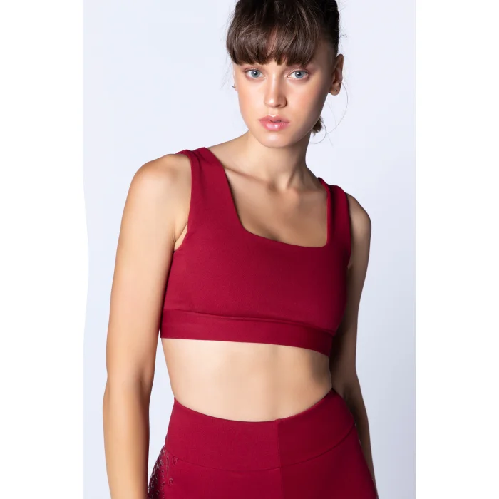 Kırmızının enerjisi bir başka! Göğüs ve sırt dekolteli kare yaka bra. Çıkarılabilir göğüs kapları. Elastikiyeti sayesinde üst düzey rahatlık ve hareket kolaylığı, şekillendirici kumaşı sayesinde müthiş bir form sağlar.