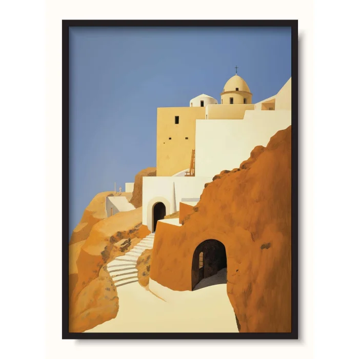 Kırmızı lav taşlarından oluşan eşsiz manzarasıyla su altı kalderasının üzerindeki kayalıklara tutunan Oia geçitleri.