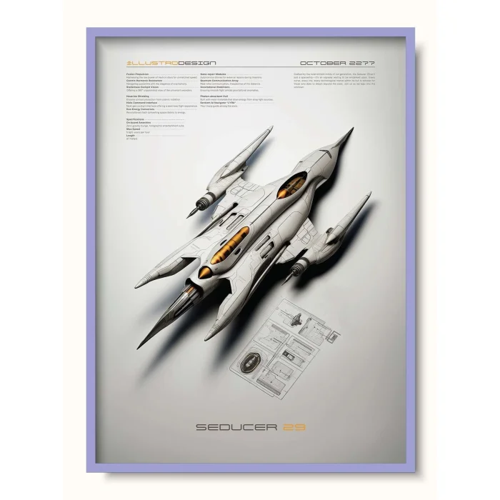 2277 yılına ait, gelişmiş teknoloji ve mühendisliği işaret eden şemalarla tamamlanmış sofistike, yüksek hızlı bir araç konsepti.