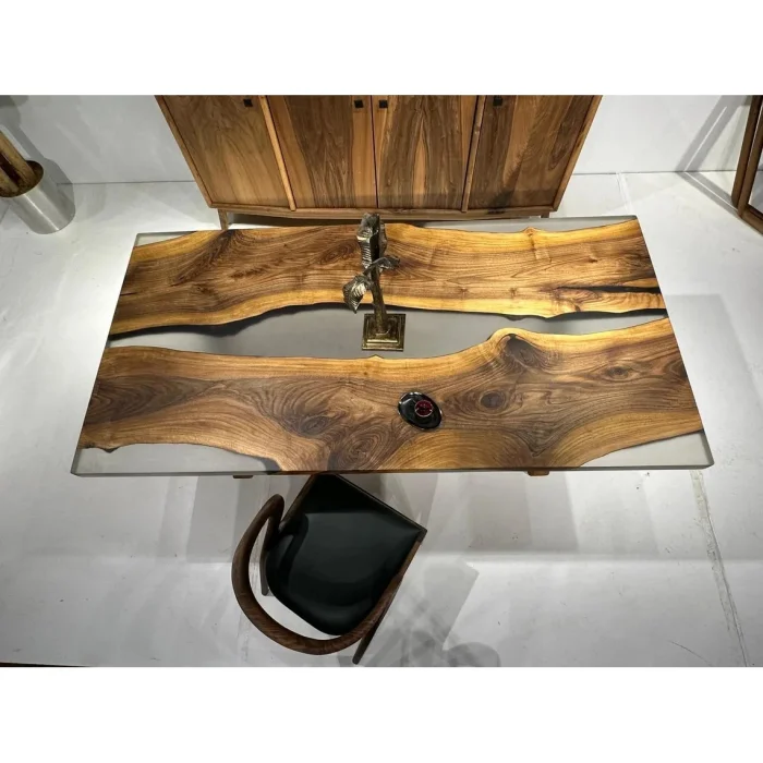 - Ana Materyaller: 200 yıllık masif ceviz ağacı ve buz şeffaf epoksi reçine
