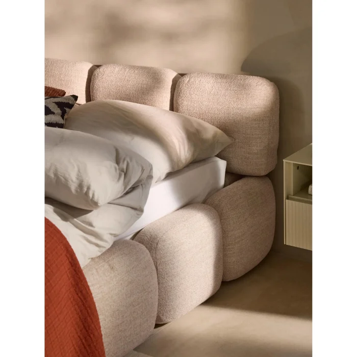 Renk Farklı renk ve kumaşlarda seçim yapabilirsiniz. Boyutlar: Belirtilen ölçü seçenekleri karyolanın içine konulacak yatak ölçüsünü işaret eder. Örneğin: 160*200 cm varyantındaki ürün iç yatak ölçüsüdür. Sofia bir kenar kalınlığı 12 cm’dir. Görseldeki ürün 160*200 cm ölçüsündeki üründür. Toplam boyutlar G 185 cm, Derinlik 225 cm, Yükseklik 90 cm Not: Görselde yer alan ürünler bazasız modeldir; bu nedenle yatak, karyolanın içine gömülü şekilde konumlandırılmıştır. Bazalı modellerde ise mekanizma gereği yatak, karyola yüzeyinin üzerinde yer alır. Toplam yük kapasitesi: Maks. 300 kg (her tarafta 150 kg) Malzeme Kılıf: Bukle (%100 polyester.) Kumaşlar, Martindale testinde 100.000 ovma ile çok yoğun kullanım için uygundur. Döşeme: Köpük dolgu, CertiPUR sertifikalı™ Yoğunluk: 16-35 kg/m³ İskelet: Masif gürgen ağacı, FSC sertifikalı, kontrplak Ayaklar: Ahşap, plastik Bu ürün sürdürülebilir kaynaklı, FSC sertifikalı® ahşaptan yapılmıştır. Ürün, alan tasarrufu için düz ambalajlı olarak teslim edilir. Ambalajı açıldıktan sonra tüm ürünün montajı gerekir (15-20 dk) Hafif kirler nemli bir bezle kolayca çıkarılabilir. İnatçı lekeler için piyasada bulunan tekstil temizlik maddeleri kullanılabilir. Temizlik maddeleri için bir garanti veremediğimizden, size bir ipucu verebiliriz: Temizlik ürünlerini her zaman göze çarpmayan bir alanda test edin! Bu sayede kumaşın bozulmaya uğramadığından emin olabilirsiniz. Uzun ömürlü olmasını sağlamak için kumaşı emprenye etmenizi öneririz. Tavsiyemiz: Döşemeli mobilyalarınızın doğrudan güneş ışığına maruz kalmadığından emin olun! Tekstiller ışığa karşı hassastır ve zamanla solabilir. Farklı boyut ve renk seçenekleri için Müşteri İlişkileri ile iletişime geçebilirsiniz. ÖNEMSİYORUZ INNATURE Home olarak, sürdürülebilir üretim anlayışını benimsiyor; uzun ömürlü, çevreye duyarlı ve geri dönüştürülebilir malzemeler kullanıyoruz. Yaşam alanlarınıza zarafet katarken doğayı korumayı önceliğimiz haline getiriyoruz. Çevre Dostu: Çocuk ve çevre sağlığına uygun malzemeler kullanılmıştır. Ürün Grubu Yatak Odası Mobilyası.