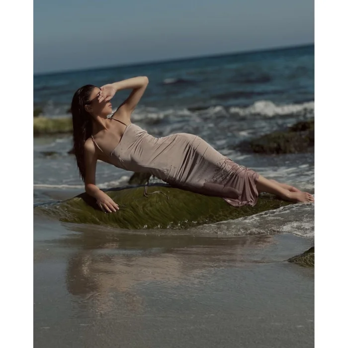 Arkadan Bağlamalı, vücudu saran midi elbise
