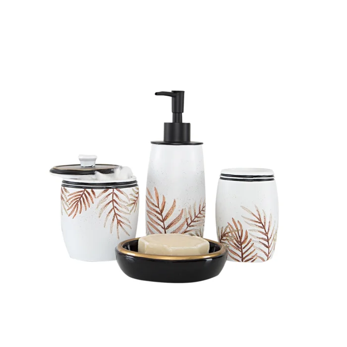 Malzeme: %100 Poliresin İçerik: 1 Adet Sıvı Sabunluk, 1 Adet Katı Sabunluk, 1 Adet Diş Fırçalık, 1 Adet Pamukluk