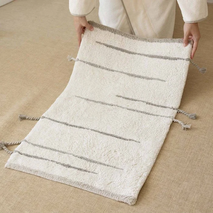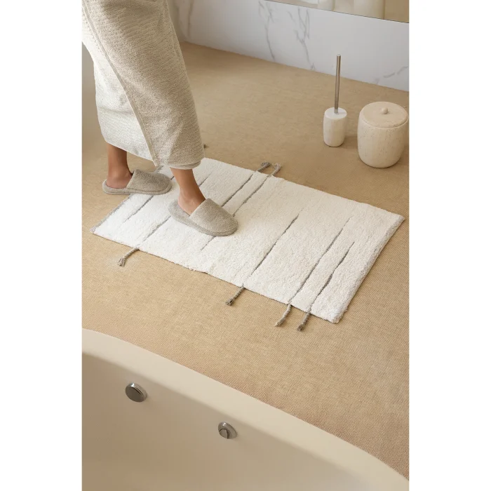 El Yapımı, Her Biri Size Özel: Her bir düz paspas, el emeğiyle özenle hazırlanır.; Aynı yöntemlerle üretilmiş olsa da, her biri küçük farklılıklarla kendi karakterini taşır.; Bu yüzden her paspas, yalnızca size ait, özgün bir dokunuş sunar.; Özgün Püskül Detayı: Paspasın kenarlarında yer alan el yapımı püsküller, tasarıma hareket ve şıklık katar.; Her püskül, paspasa karakteristik bir dokunuş ekleyerek onu sıradanlıktan çıkarır ve banyonuza doğal bir estetik kazandırır.; %100 Saf Pamuk: Doğadan gelen en saf malzemelerden biri olan %100 pamuk ipliklerle üretilmiştir.; Doğal yumuşaklığı ve sağlam yapısıyla uzun ömürlü kullanım sunar.; Banyonuzda hem konfor hem doğallık hissi yaratır.; Doğal Emicilik: Pamuklu yapısı suyu hızla emer, kısa sürede kurur.; Nefes alan dokusu sayesinde ıslaklık birikimini önler, banyonuza hijyenik ve kuru bir zemin kazandırır.; Her Adımda Doğal Yumuşaklık: Pamuğun doğadan gelen yumuşaklığı, her adımda ayağınıza konforlu bir temas sunar.; Güne huzurla başlamak ya da günü yumuşak bir dokunuşla tamamlamak isteyenler için idealdir.