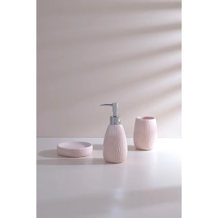 Malzeme: %100 Poliresin İçerik: 1 Adet Sıvı Sabunluk, 1 Adet Katı Sabunluk, 1 Adet Diş Fırçalık