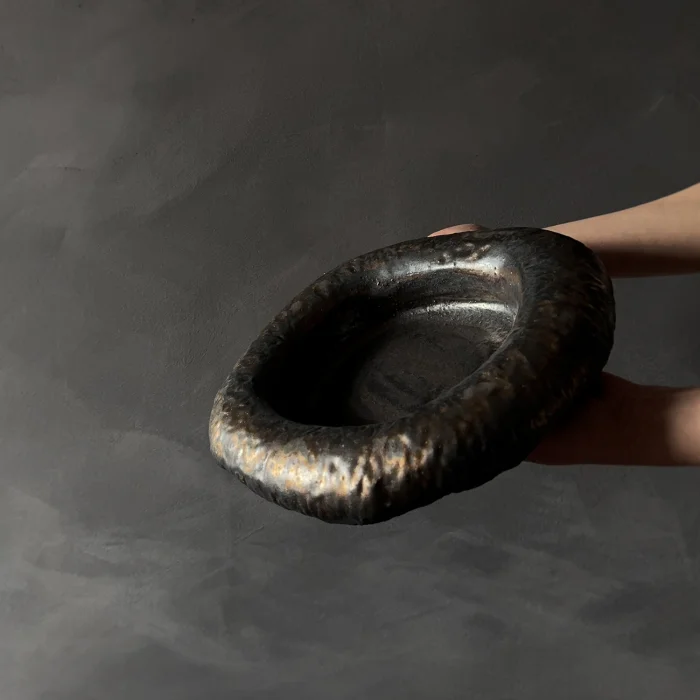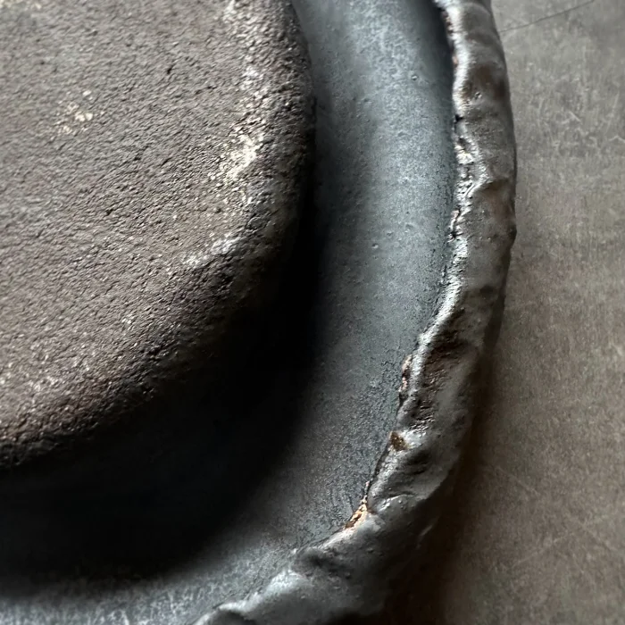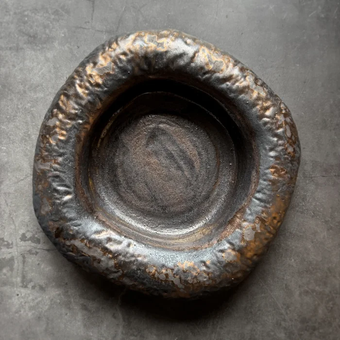 Granüllü dayanıklı kahverengi stoneware seramik çamuru ile elde dokulu şekillendirilip renklendirilmiştir.