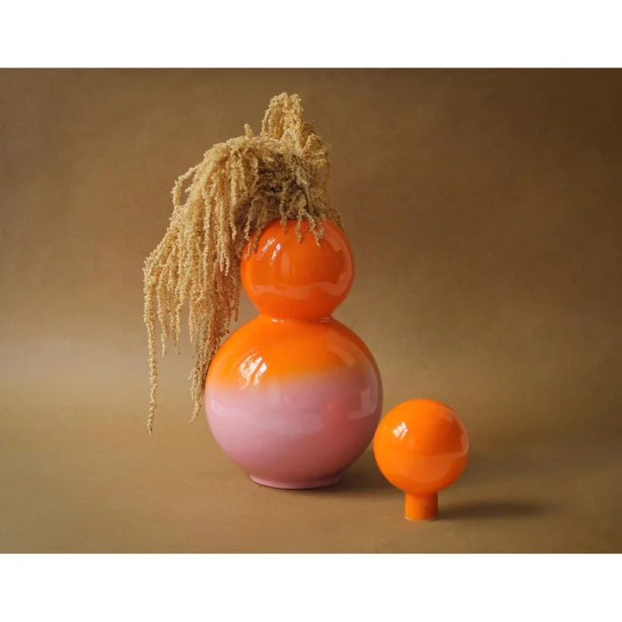 Tamamen el yapımıdır. Yuvarlak top kapaklıdır. Vazo veya dekoratif obje olarak kullanılabilir.