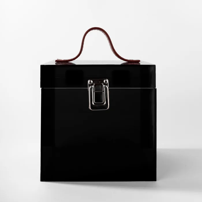 Akrilik, deri saplı, paslanmaz kilit ve aksesuarlı, el yapımı makyaj çantası
