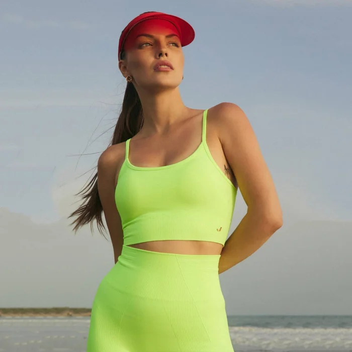 Canlı neon renkleriyle dikkat çeken Gela ayar askılı bra modelimiz, spor ve günlük kullanım için mükemmel bir seçimdir. Esnek ve rahat kumaşı, vücudunuzu sararak hareket özgürlüğü sunarken, ayarlanabilir askıları sayesinde kişiselleştirilmiş bir uyum sağlar. Nefes alabilen kumaşı ve destekleyici yapısıyla gün boyu konforlu bir kullanım sunar. Neon renkler, düşük renk haslığına sahip olması nedeniyle, yıkama, güneş ışığı ve sürtünme gibi dış etkenlere karşı daha hassas olmaktadırlar.