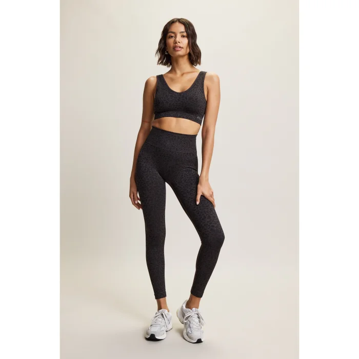 Get ready for the season with the Sahara Recycled Leggings, seamlessly knitted in our new animal jacquard. Designed with a high-rise ribbed waistband, these full-length leggings offer versatile support for studio classes, gym sessions, and everyday wear. The internal waistband elastic and four-way stretch fabric ensure a comfortable fit that moves with you and stays in place all day long. Pair with the matching bra and a cozy oversized top for a sleek look.