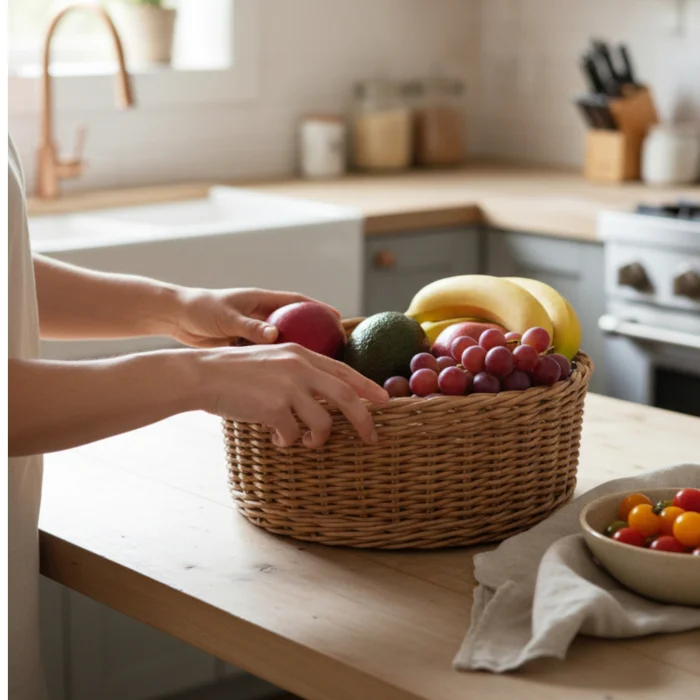 Ürün: Donna Organizer Sepet | El Yapımı Hasır Rattan Düzenleyici Sepet