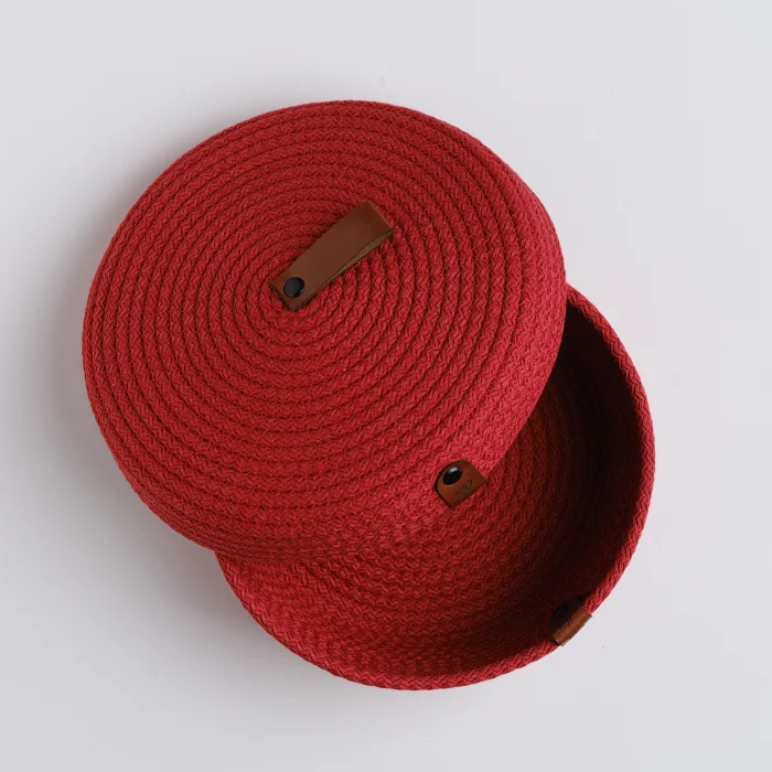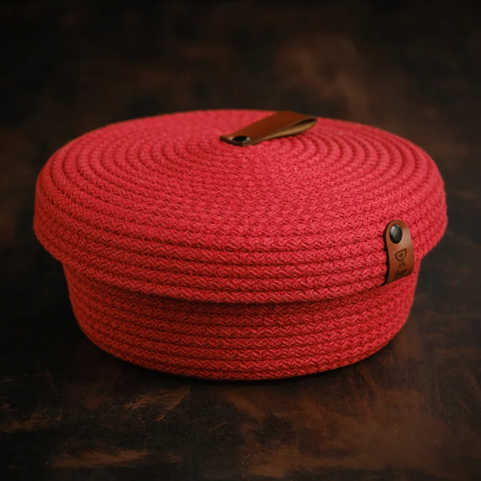 Kapaklı 20x8 ebatlarda, düzenleyici olarak kullanabileceğiniz, şık, dekoratif %100 el üretimi pamuk ip sepet. ; Evinizin her alanında, mutfak, banyo vb. eşyalarınız düzenlemek amacıyla kullanabilirsiniz. ; Ürünlerimiz, yüksek kaliteli hakiki deri ve çevre dostu malzemelerle üretilmiştir. ; Doğanın güzelliklerini koruyarak tasarlanan bu benzersiz ürünler, size hem zarafet hem de doğallığın mükemmel uyumunu sunuyor. ;