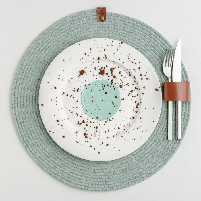 Amerikan servis pamuk ip kullanılarak tamamen elde üretilmiş olup, 40 cm çapındadır. ; Sofralarınızı renklendirmek için farklı renklerde satın alarak kendi kombinasyonunuzu oluşturabilirsiniz. ; Ürünlerimiz, yüksek kaliteli hakiki deri ve çevre dostu malzemelerle üretilmiştir. ; Doğanın güzelliklerini koruyarak tasarlanan bu benzersiz ürünler, size hem zarafet hem de doğallığın mükemmel uyumunu sunuyor. ;