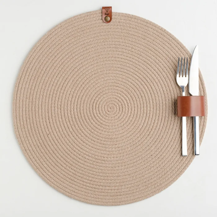 Amerikan servis pamuk ip kullanılarak tamamen elde üretilmiş olup, 40 cm çapındadır. ; Sofralarınızı renklendirmek için farklı renklerde satın alarak kendi kombinasyonunuzu oluşturabilirsiniz. ; Ürünlerimiz, yüksek kaliteli hakiki deri ve çevre dostu malzemelerle üretilmiştir. ; Doğanın güzelliklerini koruyarak tasarlanan bu benzersiz ürünler, size hem zarafet hem de doğallığın mükemmel uyumunu sunuyor. ;