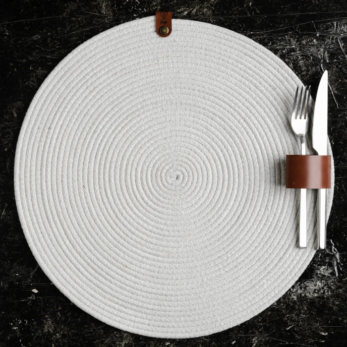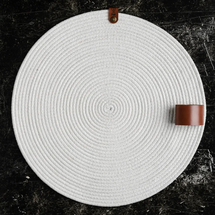Amerikan servis pamuk ip kullanılarak tamamen elde üretilmiş olup, 40 cm çapındadır. ; Sofralarınızı renklendirmek için farklı renklerde satın alarak kendi kombinasyonunuzu oluşturabilirsiniz. ; Ürünlerimiz, yüksek kaliteli hakiki deri ve çevre dostu malzemelerle üretilmiştir. ; Doğanın güzelliklerini koruyarak tasarlanan bu benzersiz ürünler, size hem zarafet hem de doğallığın mükemmel uyumunu sunuyor. ;