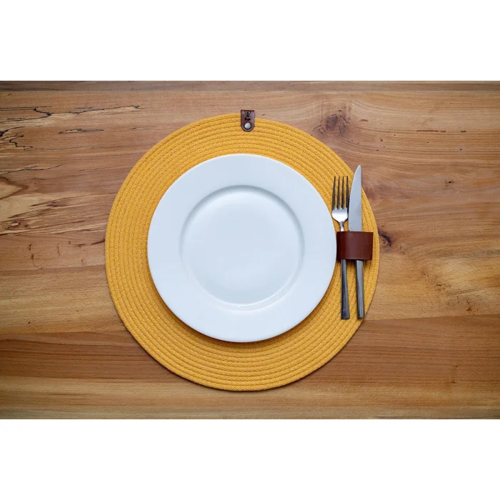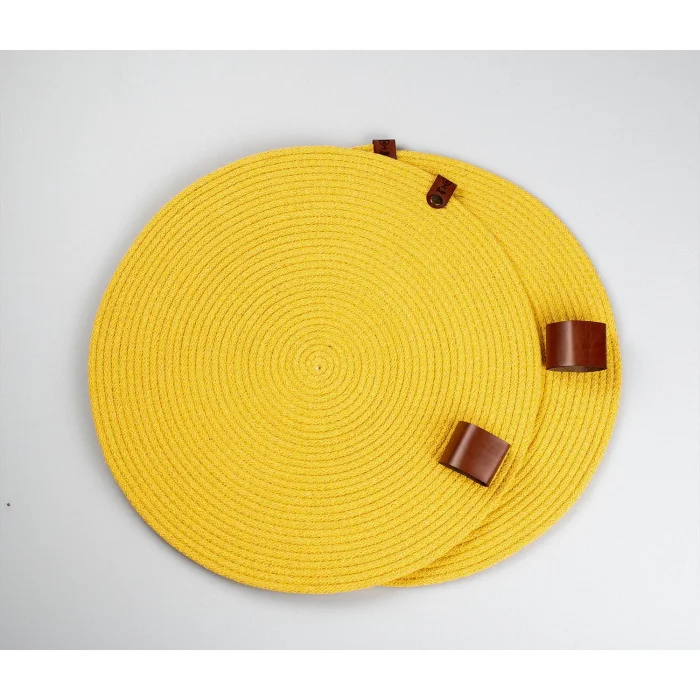 Amerikan servis pamuk ip kullanılarak tamamen elde üretilmiş olup, 40 cm çapındadır. ; Sofralarınızı renklendirmek için farklı renklerde satın alarak kendi kombinasyonunuzu oluşturabilirsiniz. ; Ürünlerimiz, yüksek kaliteli hakiki deri ve çevre dostu malzemelerle üretilmiştir. ; Doğanın güzelliklerini koruyarak tasarlanan bu benzersiz ürünler, size hem zarafet hem de doğallığın mükemmel uyumunu sunuyor. ;