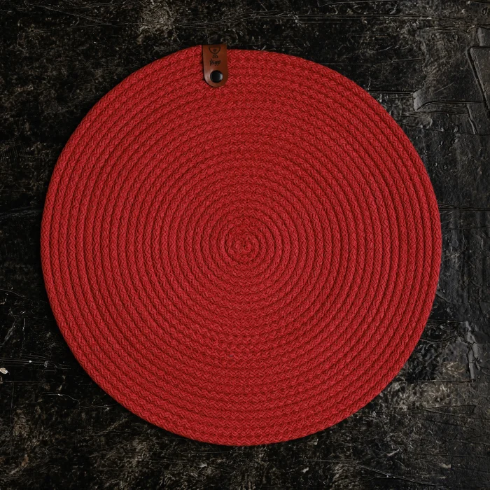 Amerikan servis pamuk ip kullanılarak tamamen elde üretilmiş olup, 32 cm çapındadır. ; Sofralarınızı renklendirmek için farklı renklerde tek tek satın alarak kendi kombinasyonunuzu oluşturabilirsiniz. ; Ürünlerimiz, yüksek kaliteli hakiki deri ve çevre dostu malzemelerle üretilmiştir. ; Doğanın güzelliklerini koruyarak tasarlanan bu benzersiz ürünler, size hem zarafet hem de doğallığın mükemmel uyumunu sunuyor. ; Ürün Özellikleri