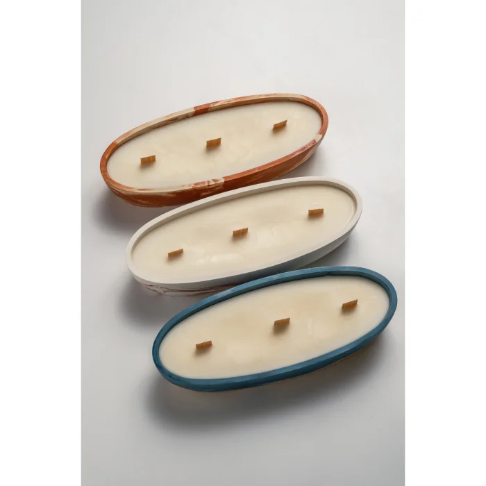 El yapımı, uzun ve yalın formuyla dikkat çeken bir soya mumudur.