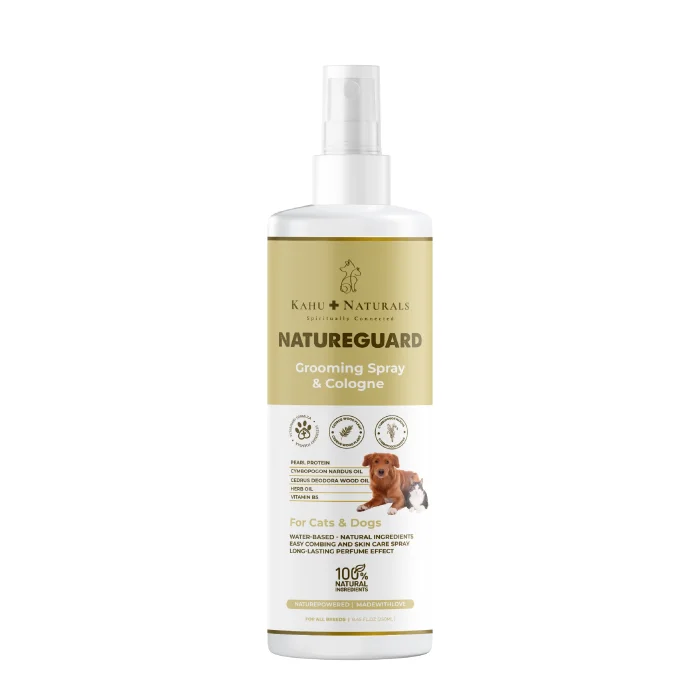 Kahu Naturals NatureGuard, nazik formülü ile kolay tarama, kürk bakımı, deri onarımı sağlar ve su bazlı doğal bileşenlerden oluşur, patili dostlarımızın günlük bakımı için mükemmel bir son dokunuştur.