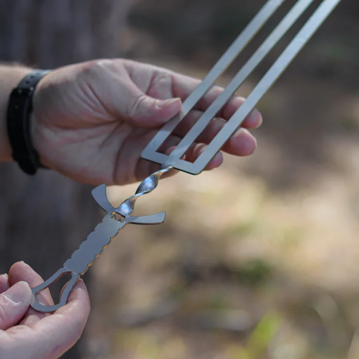 2-3 şiş kullanarak IgniteRoast™ Katlanır Bushcraft Mangal, CampyTri Grill™ Katlanabilir Bushcraft Mangal, OttomanFire™ Bushcraft Jel Yakıtlı Osmanlı Ocağı, DuoWire™ Dikdörtgen Bushcraft Izgara Teli gibi kamp ürünleriyle uyumlu hale getirebilirsiniz.