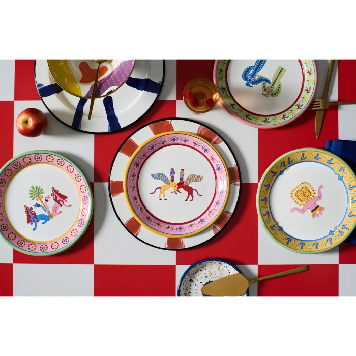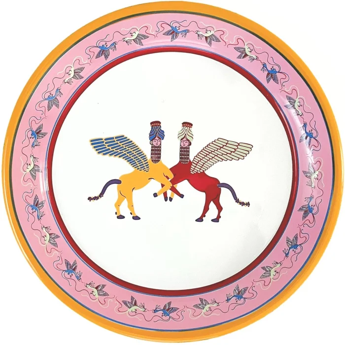 Dekal baskı tekniği kullanılarak her biri el işciliği ile tek tek üretilen emaye yemek tabağı. 25 CM