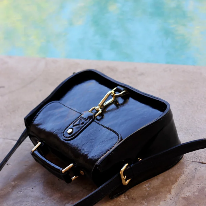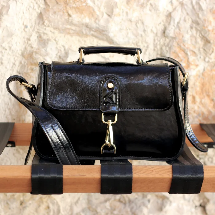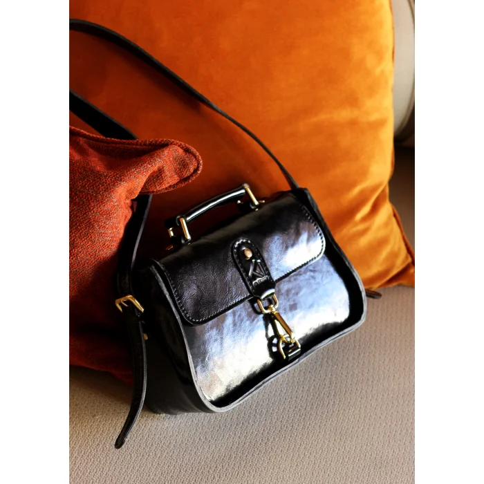 Kullanılan Malzeme: Hakiki dana derisi, light gold renkli yüksek kaliteli metal aksesuarlar ve polyester mumlu ip. Boyutlar: En 27 cm, Boy 20 cm, Derinlik: 11 cm.