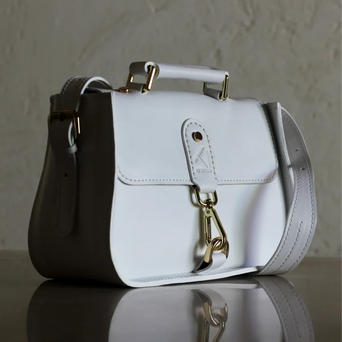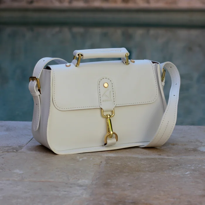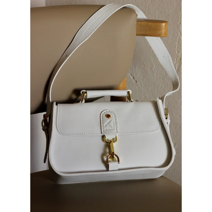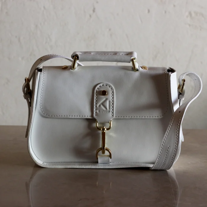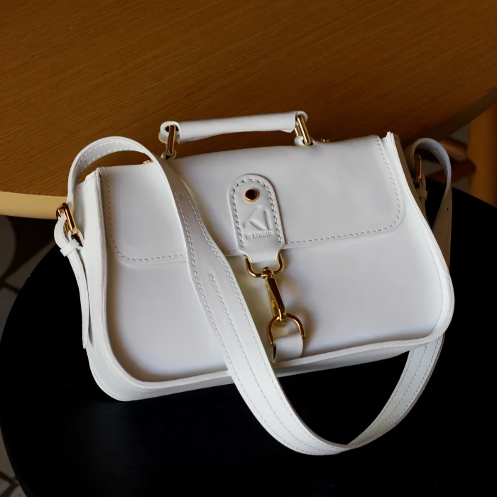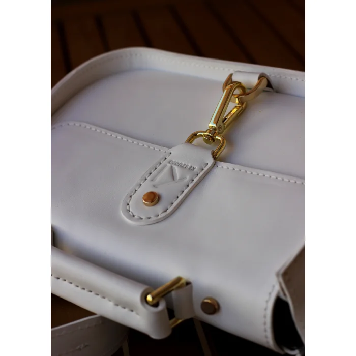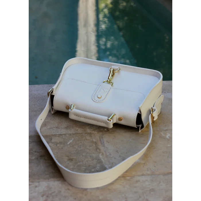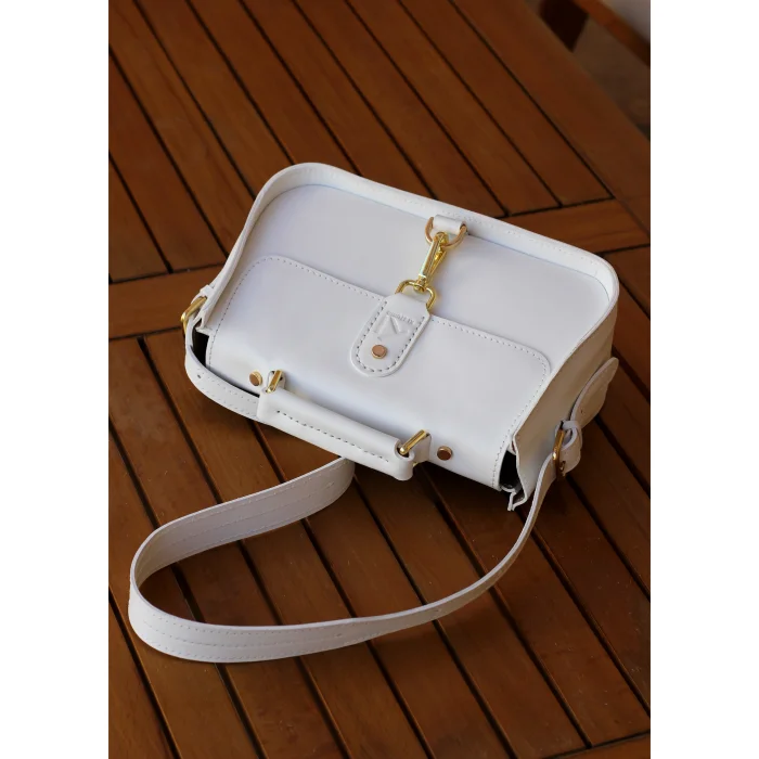 Kullanılan Malzeme: Hakiki dana derisi, light gold renkli yüksek kaliteli metal aksesuarlar ve polyester mumlu ip. Boyutlar: En 27 cm, Boy 20 cm, Derinlik: 11 cm.