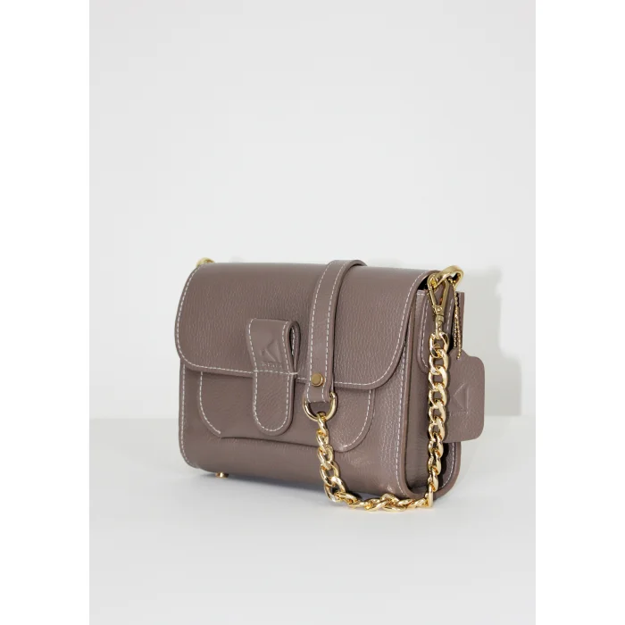 Merry Handbag yüksek kaliteli dana derisi ve dana astar ile üretilen, mıknatıslı kapak tasarımı ile konforlu bir kullanım sunan, değiştirilebilir kısa omuz ve el sapının yanında uzun zincir detaylı sap seçenekleriyle alternatif kullanım şekilleri olan bir çantadır. İç tasarımında bulunan cep detayı ile fonksiyonel bir kullanıma sahiptir. Tasarımında kullanılan yüksek kaliteli light gold renkli metal aksesuarları ile göz alıcı şık detaylar yakalnmıştır.