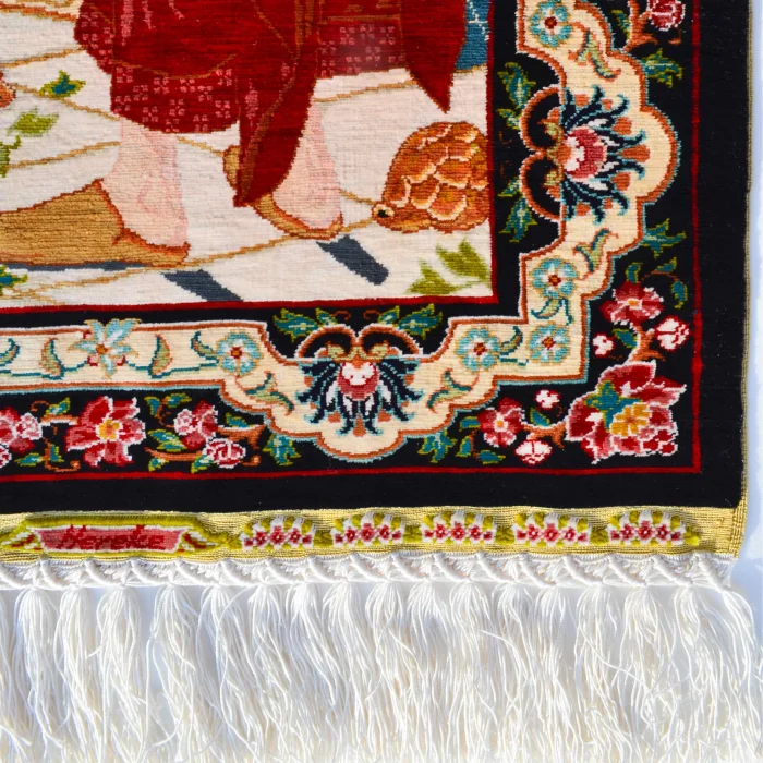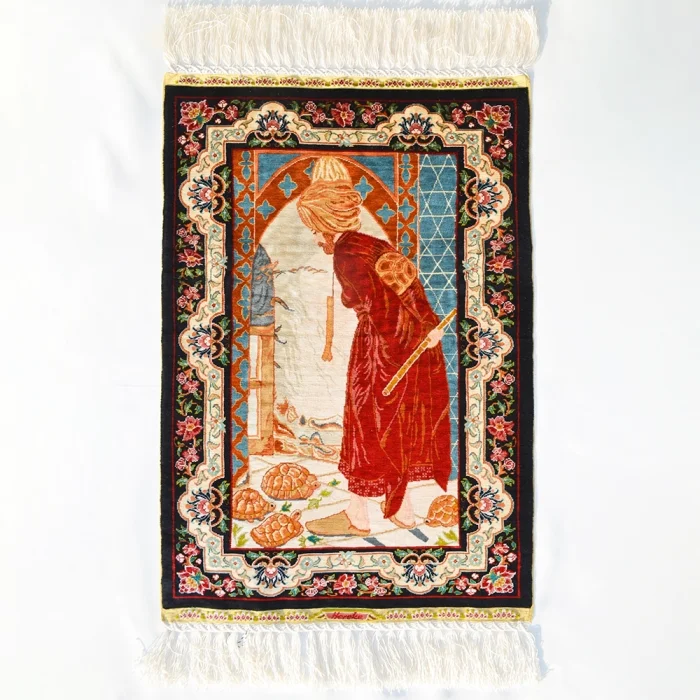 Ürün: Kaplumbağa Terbiyecisi Desenli Saf İpek El Dokuma Duvar Halısı