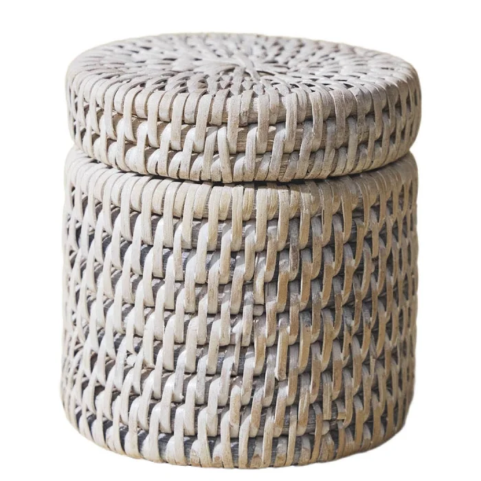 Rattan Kulak Çubuğu Kutusu: Sürdürülebilebilir 1. sınıf rattan kullanılarak yapılan bu ürünümüz, Yangon’daki usta zanaatkarların kullandığı geleneksel sıkı el örmesi tekniğiyle yapılmıştır. Renk: Mat Beyaz Eskitme Malzeme: El Yapımı Rattan Boyut: 8,5(U)X8,5(G)X9,5(Y) cm