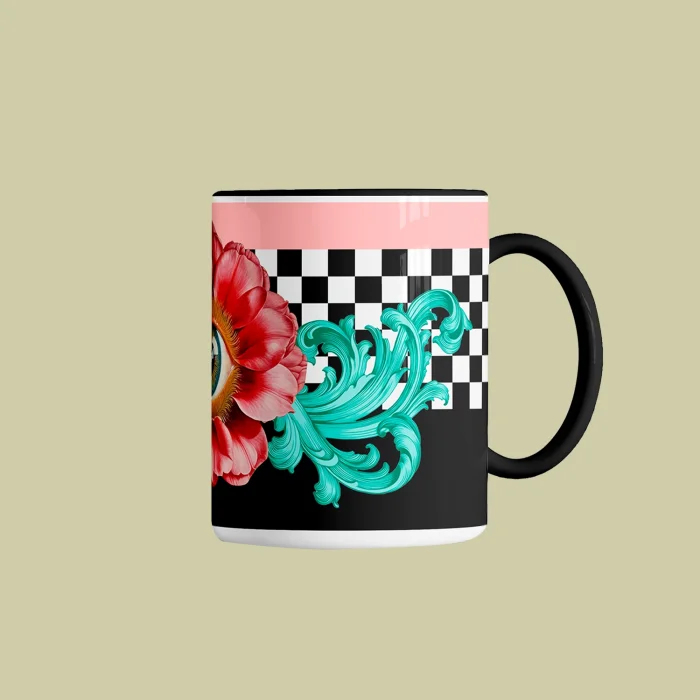 Ürün: Lucida | Özel El Çizimi Tasarım Kupa | Sanatsal Hediyelik | Siyah Kulplu Kahve Bardağı
