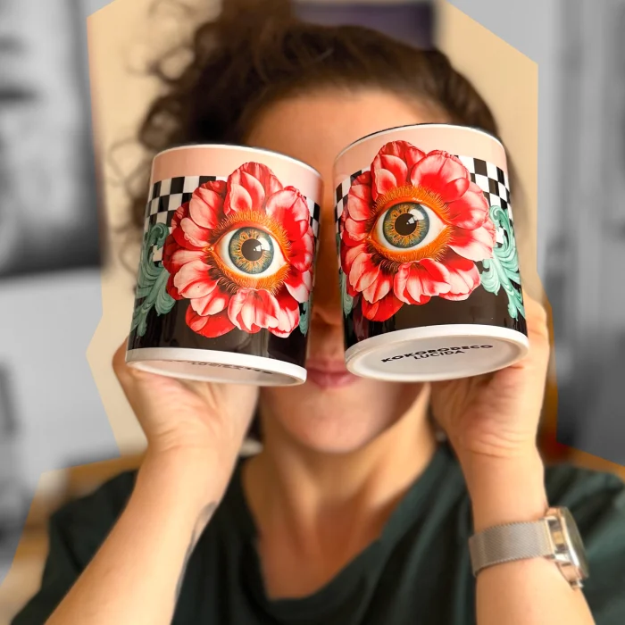LUCIDA, merkezindeki güçlü göz sembolü ve siyah-beyaz kontrast detaylarıyla sezgiyi, farkındalığı ve içsel bakışı temsil eden özgün bir porselen mug bardaktır.