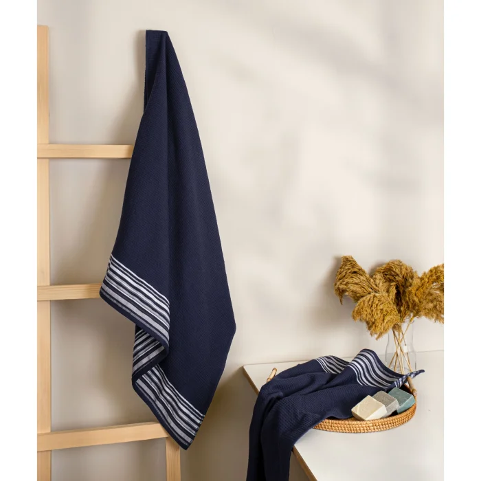 Limira 2'li Havlu Seti, banyo deneyiminizi bir üst seviyeye taşıyor. Yumuşaklık ve dayanıklılık için seçilen yüksek kaliteli pamuk malzemesi ile üretildi. Lacivert tonları, banyonuza modern bir dokunuş katarak şıklığı artırır. 1 adet 50x90 1 adet 90x150 boyutlarında havludan oluşur. Suyu hızla nüfuz eden dokusu ile hızlıca kurur, böylece her zaman hazır ve rahat hissedersiniz. Minimalist tasarımı ile zamansız bir şıklık sunar. Petek dokusu, özenli tasarımı ve su emici kumaşı benzersiz bir banyo deneyimi vaat ediyor. Neme veda edin rahatlığa merhaba deyin. 30 derecede yıkanması tavsiye edilir. Kumaşın kalitesini korumak için çamaşır suyu veya alkol gibi sert kimyasallarla yıkamaktan kaçının. Ağartma yapılmamalıdır. Ütü gerektirmez. Sererek kurutma tavsiye edilir. Kurutma işlemi sırasında, olası kumaş hasarlarını önlemek için doğrudan güneş ışığına maruz kalmayı önleyin. Not: Aydınlatma ve monitör ayarlarına bağlı olarak gerçek renkler farklılık gösterebilir.