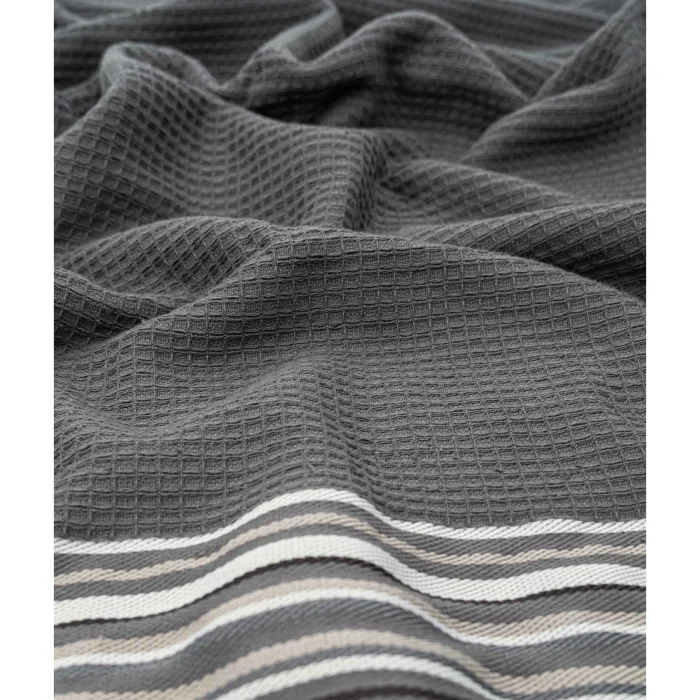 Gofre dokulu pamuk kumaşı ve çizgisel ton geçişleriyle öne çıkar. Pastel tonlardaki renk paleti farklı dekorasyonlara uyum sağlar. 50x90 ebatlarıyla el ve yüz kurulama amacıyla idealdir. Yumuşak ve konforlu bir kullanım sunar, doğal pamuğun rahatlığı ile dinlendirir. Banyolarınızda şık bir görünüm ve fonksiyonel kullanım sağlar. Emici yapısı sayesinde iyi bir kurulama deneyimi sağlar ve hızlı kurur. Mutlaka çamaşır makinasında 30° 'de yıkayınız. Ağartıcı ve ağartıcı özellikli deterjan kullanmayınız Kumaşın kalitesini korumak için çamaşır suyu veya alkol gibi sert kimyasallarla yıkamaktan kaçının. Sererek kurutma tavsiye edilir. Kurutma işlemi sırasında, olası kumaş hasarlarını önlemek için doğrudan güneş ışığına maruz kalmayı önleyin. Not: Aydınlatma ve monitör ayarlarına bağlı olarak gerçek renkler farklılık gösterebilir.